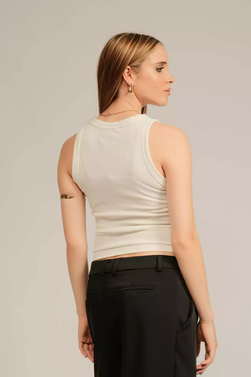 Este pantalón recto de estilo clásico y tiro medio tiene un diseño de cintura reforzada que incluye presillas para cinturón y una cartera con cierre y ganchos escondidos, ofrece un ajuste impecable y seguro. Cuenta con dos bolsillos delanteros laterales ocultos y dos bolsillos ojal con botón en la parte trasera, que aportan un acabado sofisticado sin perder practicidad.