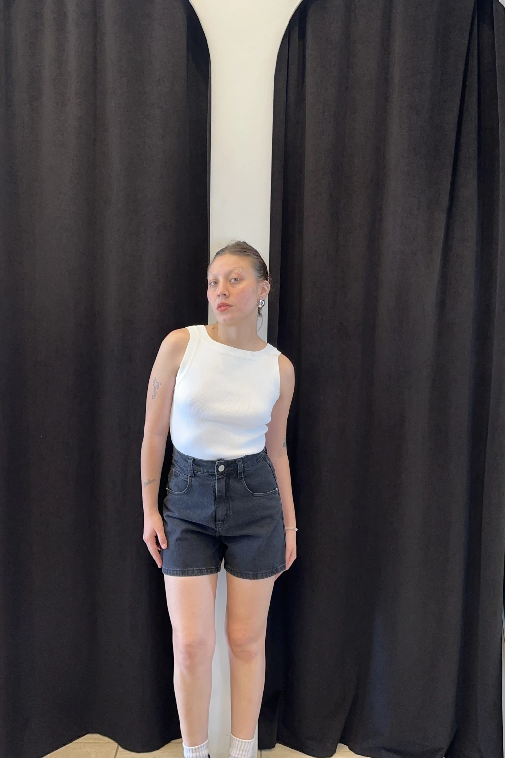 Este short estilo mom de tiro alto está confeccionado en denim rígido 100% algodón, lo que le da estructura y un calce firme. Su diseño cuenta con un ruedo limpio y prolijo lo convierte en una prenda versátil que podés usar tanto de día como de noche. Ideal para combinar con tops, camisas o buzos amplios.