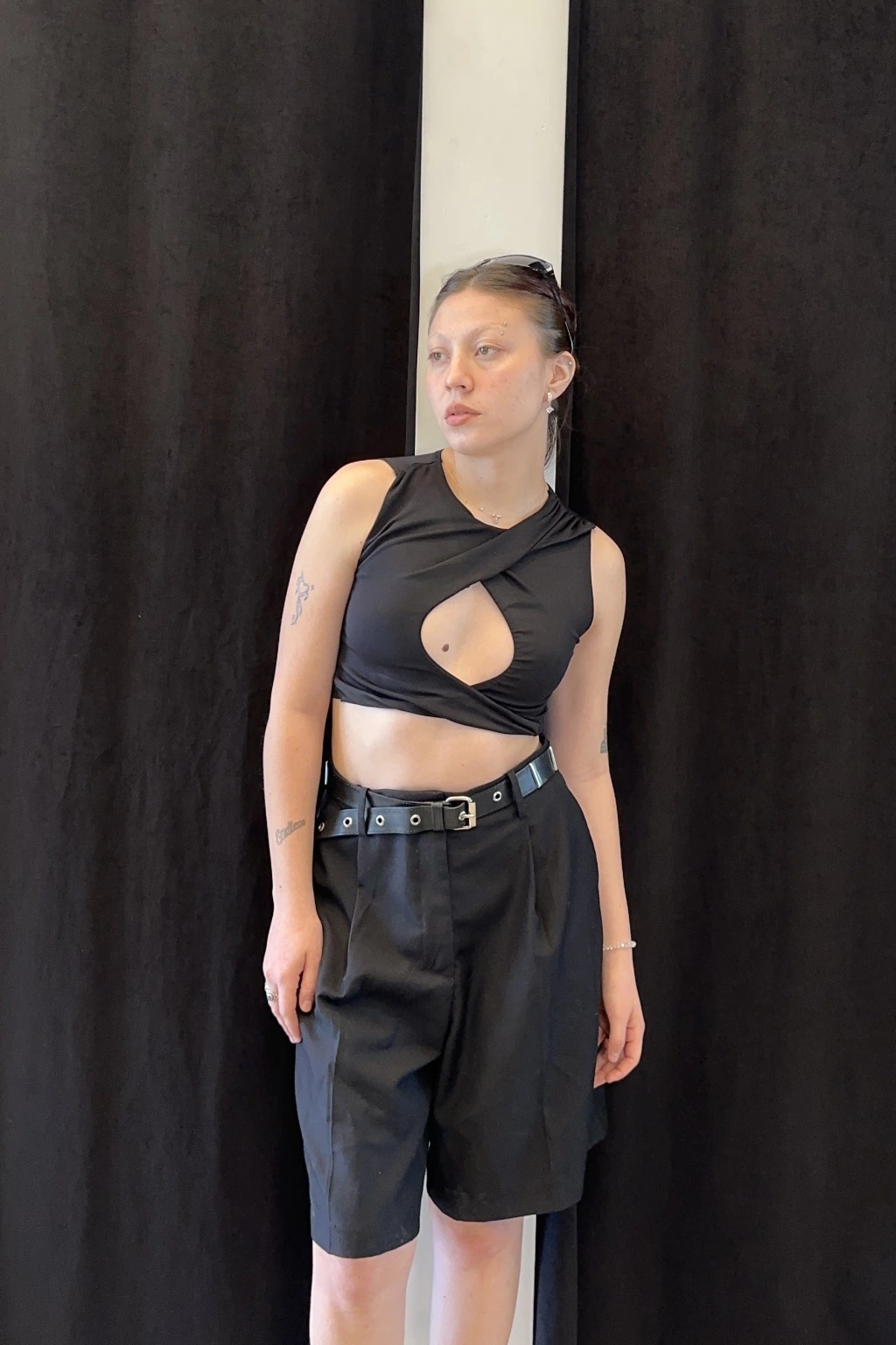 Este croptop sin mangas, confeccionado en lycra, se ajusta perfectamente al cuerpo. Su diseño cuenta con un detalle de nudo en el delantero y escote con sustracción que le aportan un toque de modernidad y estilo. La tela doble en el delantero garantiza un soporte adicional, sin sacrificar la elasticidad y suavidad que ofrece la lycra. Es una prenda versátil, ideal para usar sola o combinar con otras piezas en cualquier ocasión.