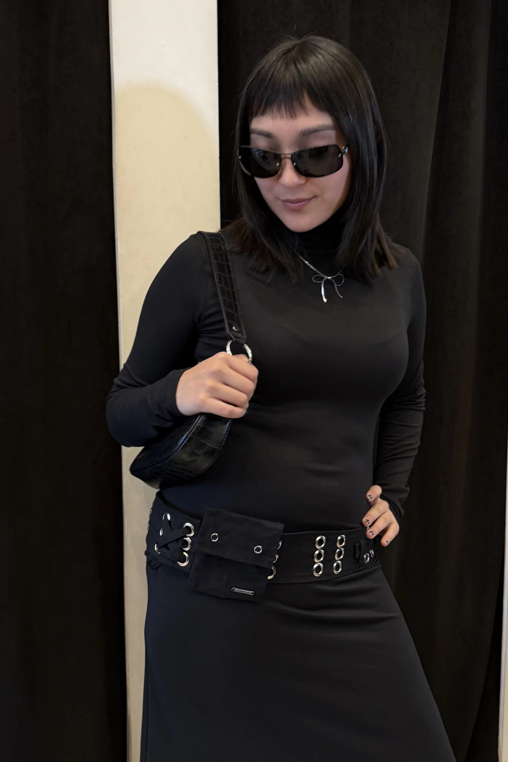 Este vestido de cuello polera combina elegancia y comodidad. Tiene un diseño largo, al cuerpo y con una caída acampanada desde la cintura. Es súper versátil: fino y elegante para la noche, y cómodo y fresco para el día. Una pieza ideal que se adapta a todos tus momentos.